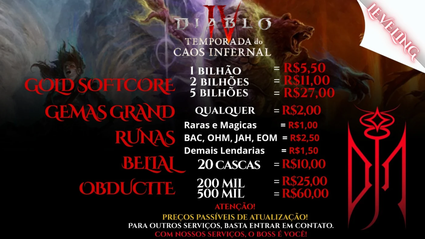 Como toda season a equipe djNStore vai estar a todo vapor nessa nova temporada. Já temos toda a estrutura pra melhor atendê-los, contanto com 5 computadores, 2 consoles de Psn e 1 console de xbox além dos melhores prestadores de serviço e jogadores do cenário de Diablo IV. Como todos sabem nossos preços são adaptativos, ou seja, conforme a season vai passando os preços vão caindo!!