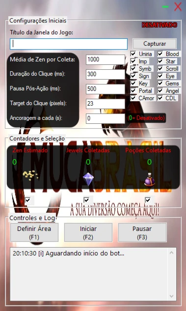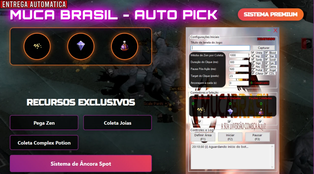 Deixe a coleta maçante de itens no Mu Online para o nosso software! O AUTO PICK MUCABRASIL é a ferramenta definitiva para players que querem maximizar seus lucros e eficiência sans complicação – com licença VITALÍCIA! 🎉