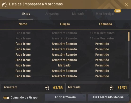 96 empregadas na conta: 65 de armazém / 31 de mercado - grinda tranquilo em qualquer spot do jogo