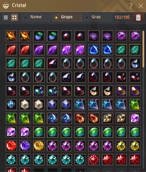 Todos os cristais importantes do jogo com inventário de cristal adicionado com p2w, incluindo cristais de lifeskill