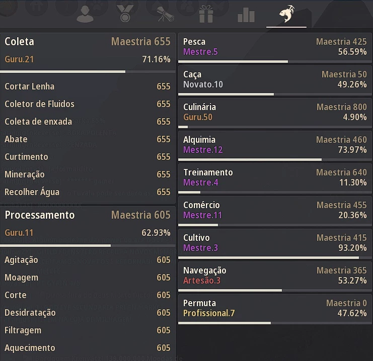 Black Desert SA 712 de GS/Guru 50 culinária/Guru 21 coleta