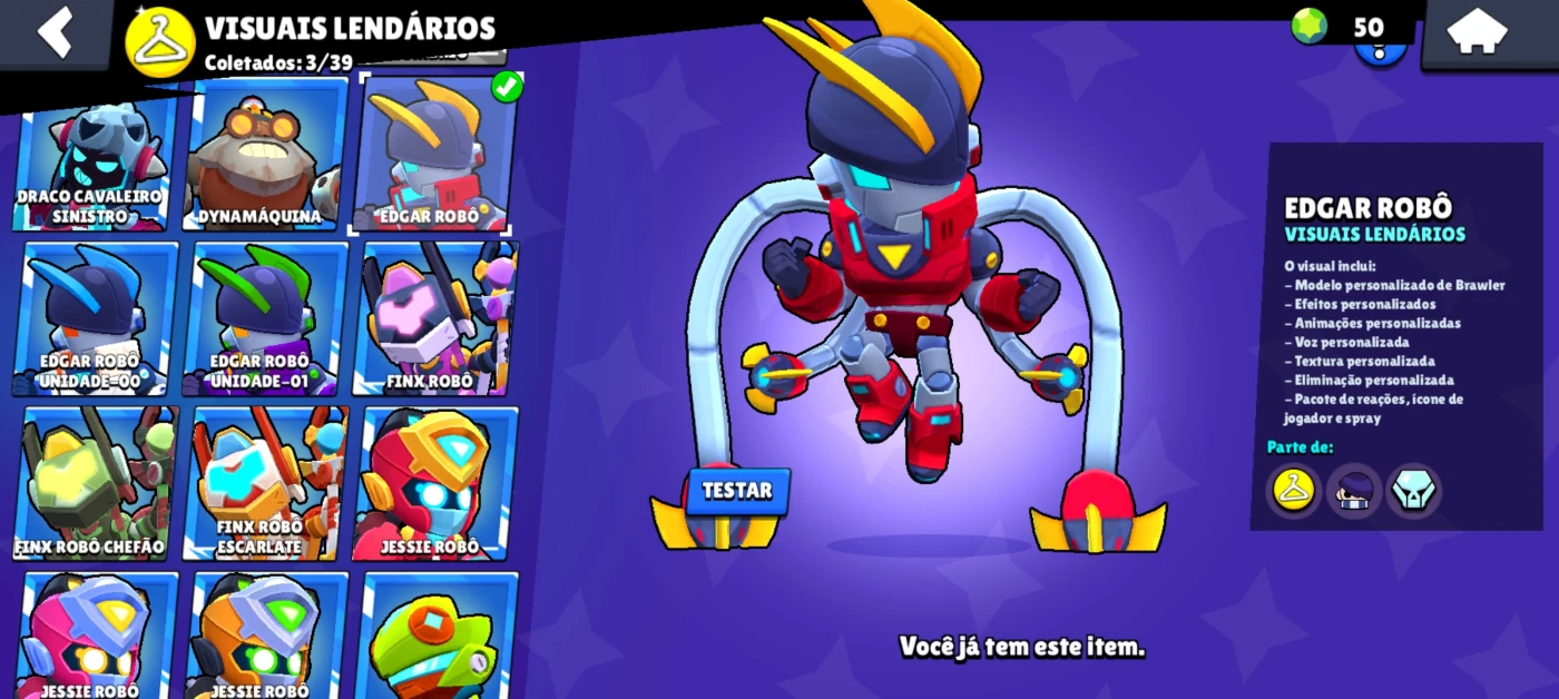 BRAWLERS LENDÁRIOS:WATTSON, LEON, CORDELIUS E DRACOSKINS RELEVANTES:RICO SOBERANO, BO ROBO, EDGAR ROBO, WATTSON LIGHTYEAR, DARRYL OMEGA CAIXA, SHELLY SQUAD BUSTERS, EL PRIMO ESPONJA, DYNAMIKE E SHELLY CLASSICOS