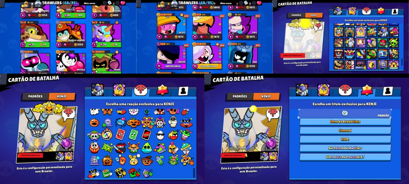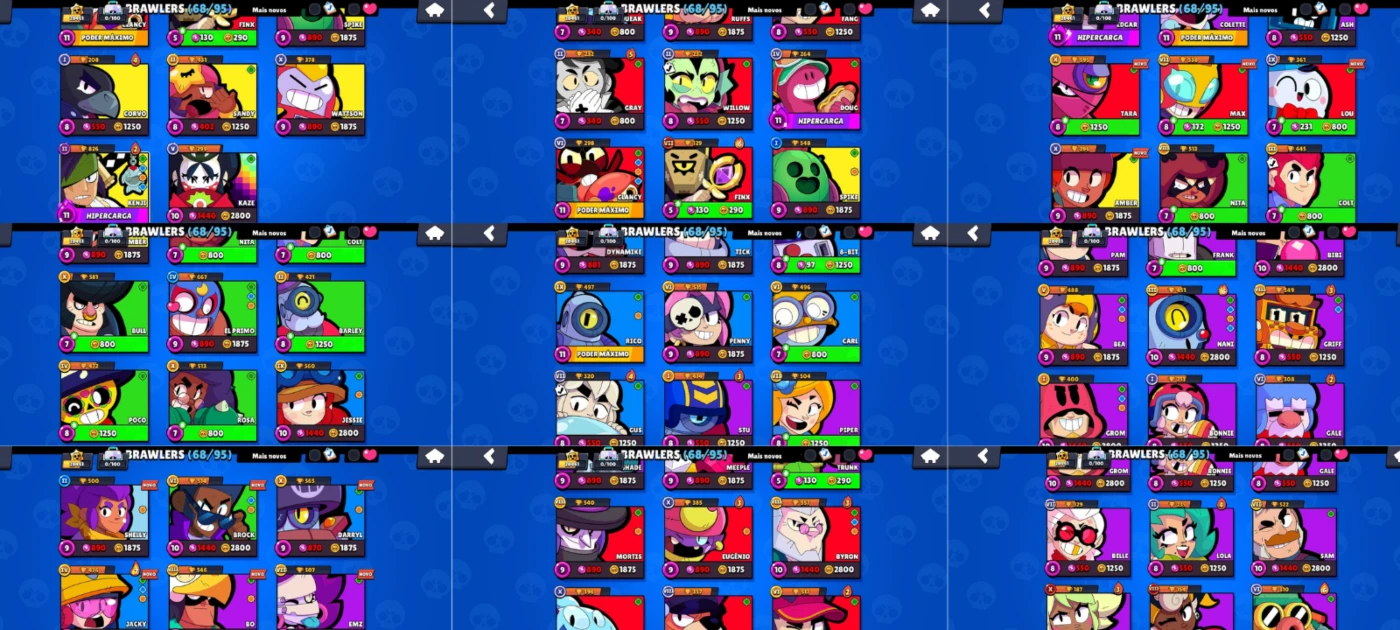 • 68 brawlers (vários nível 11 e com hypercharge)