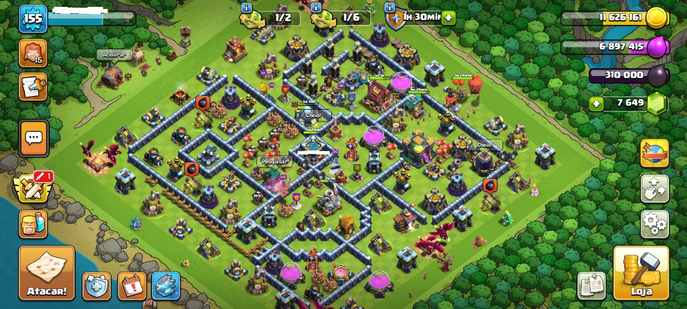 Cv14 - Heróis Muito Fortes - 7649 Gemas - 11 Equip. Épicos - Clash of Clans