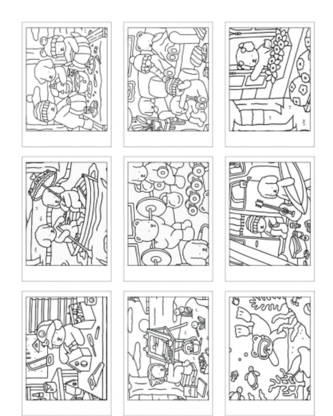Ilustrações no estilo Bobbie Goods, ideais para colorir ou montar