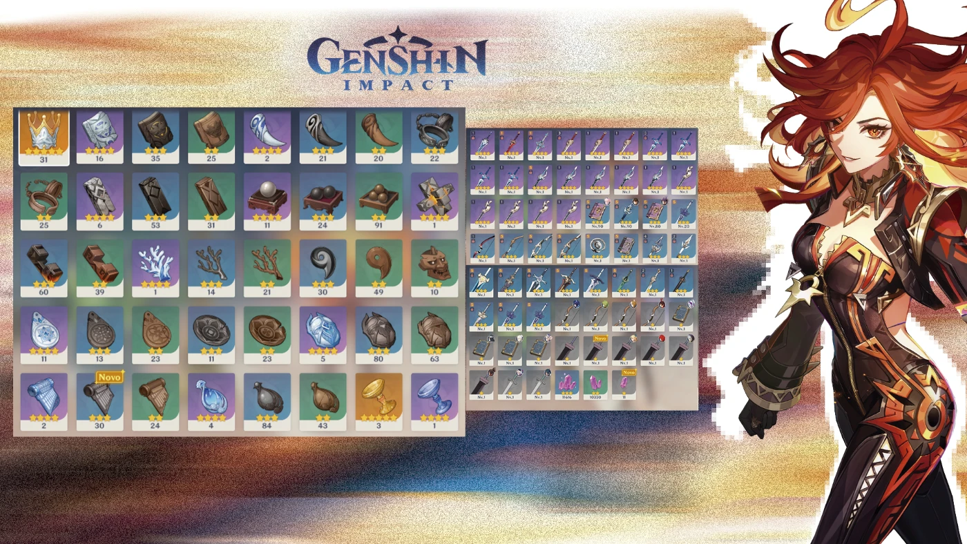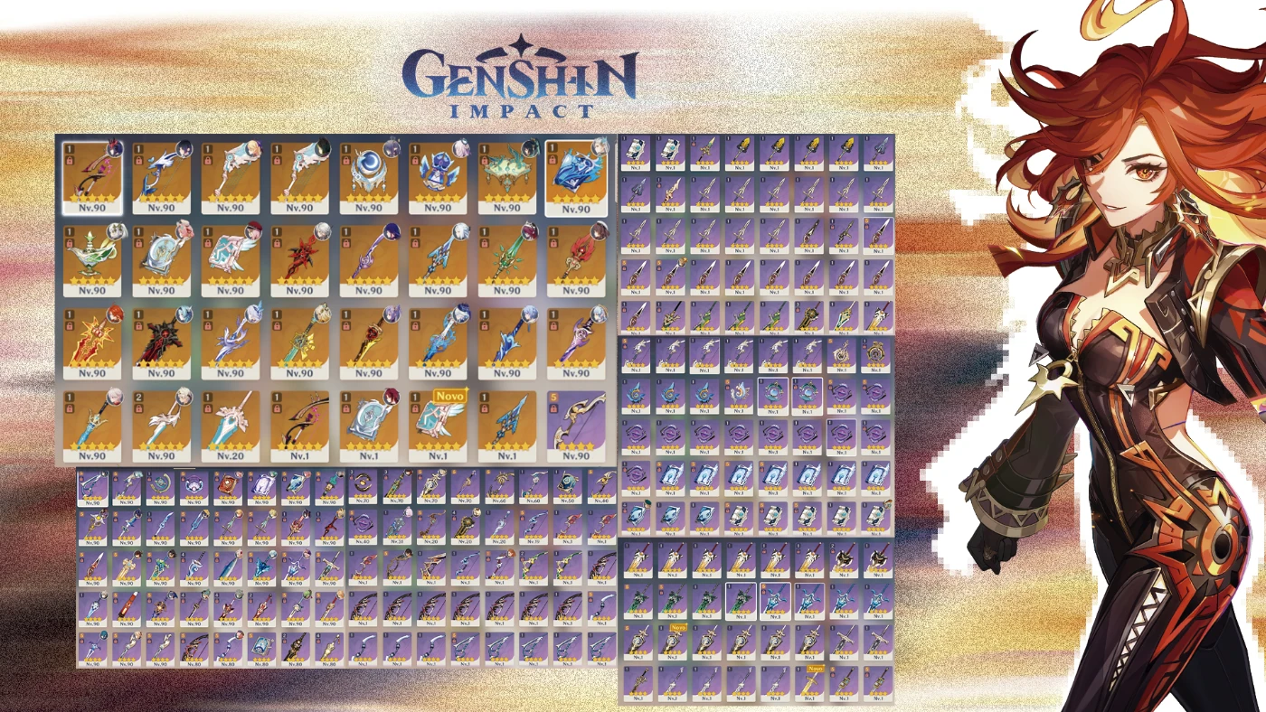 • 5★ exclusivas: Báculo de Homa, Cortadora da Neblina, Juramento pela Liberdade, Aqua Simulacra, Luz do Cortador de Grama, Sonhos Flutuantes, Esplendor das Águas Silenciosas, Harpa Celestial, entre outras