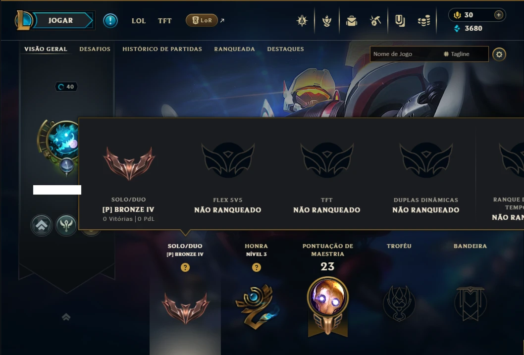Bronze 4 com 21 Champs e 2 Skins - League of Legends LOL