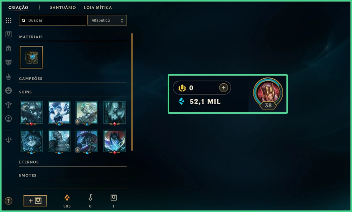 8 Fragmentos de Skin: Jax Reinos Mech, Kai’Sa K/DA All Out, Master Yi Escamas Celestiais, Morgana Congregação das Bruxas, Nunu e Willump Noite Apavorante, Projeto: Sylas, Senna Feiticeira, Varus Empíreo