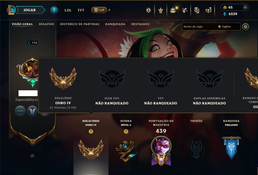 Ouro 4 com 125 Champs e 82 Skins ( ADC / SUP / MID ) - League of Legends LOL