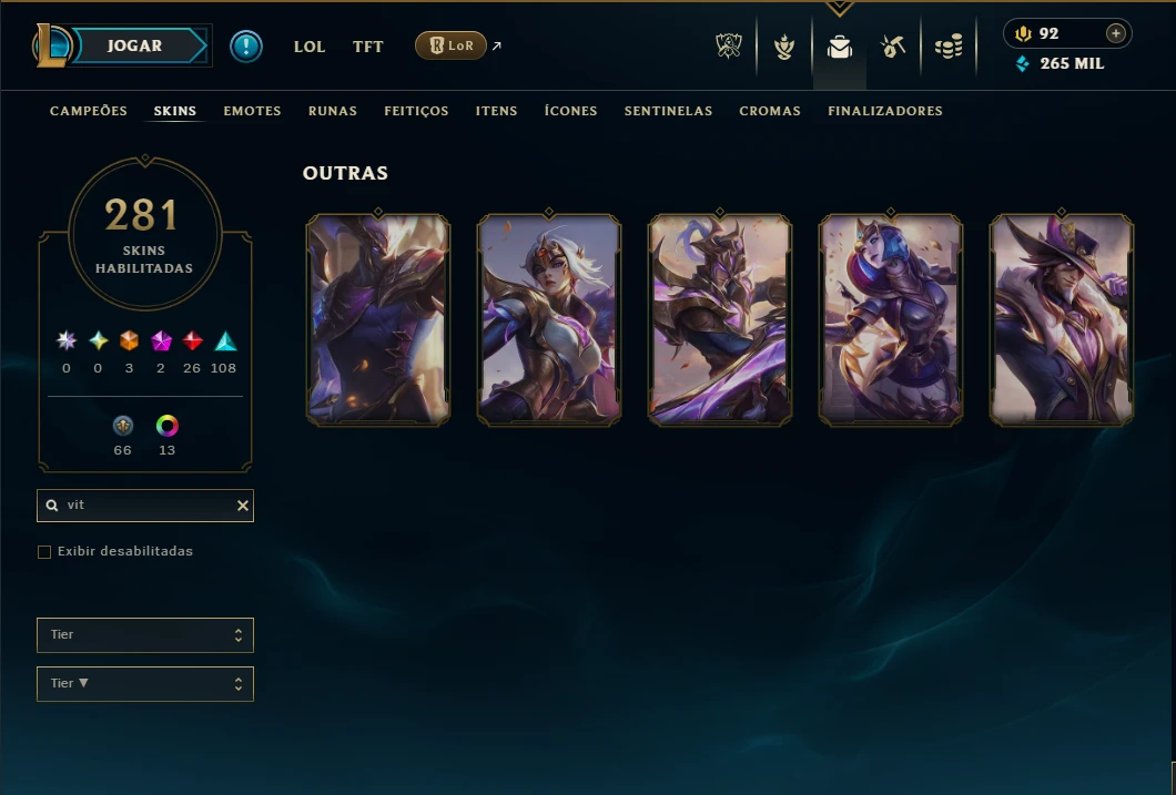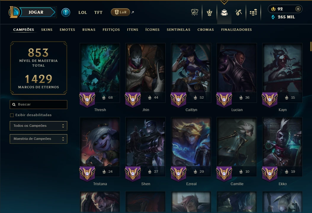 ( ADC / SUP / TOP ) - Conta Prata 4 com mais de 700 Jogos, Maestria 22 de Thresh, 17 de Jhin, 15 de Caitlyn, 12 de Lucian, 37 Maestrias acima de 7, 281 Skins, 3 Ultimates, 2 Miticas, 5 Vitoriosas, 265k de EA, 14 Cromas, 310 Icones, 233 Emotes, 2 Fragmentos de skins, 15 Essencias Miticas, 3 Reembolsos e Honra 3.