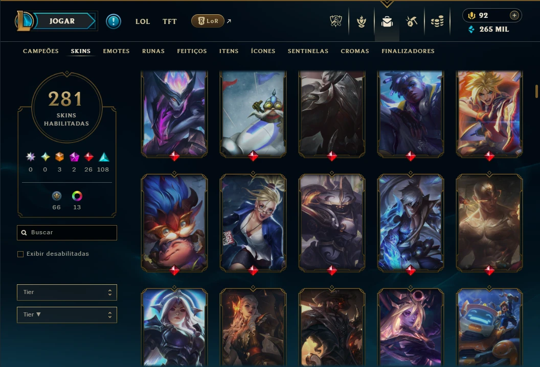Prata 4 com TODOS os Champs e 281 Skins ( ADC / SUP / TOP ) - League of Legends LOL