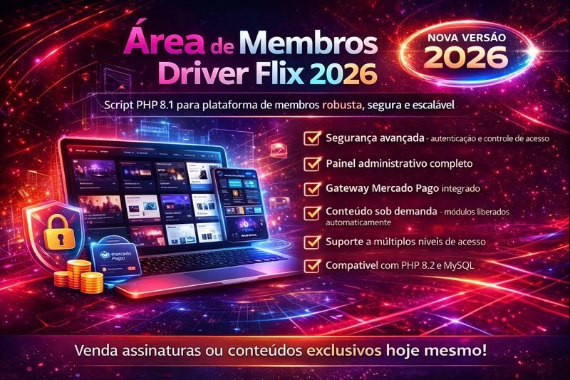 O Script PHP 2026 — V3 é uma solução completa para quem deseja criar, vender e gerenciar cursos online, assinaturas e conteúdos exclusivos em sua própria plataforma, com total controle, segurança e liberdade, sem depender de mensalidades ou plataformas terceiras.