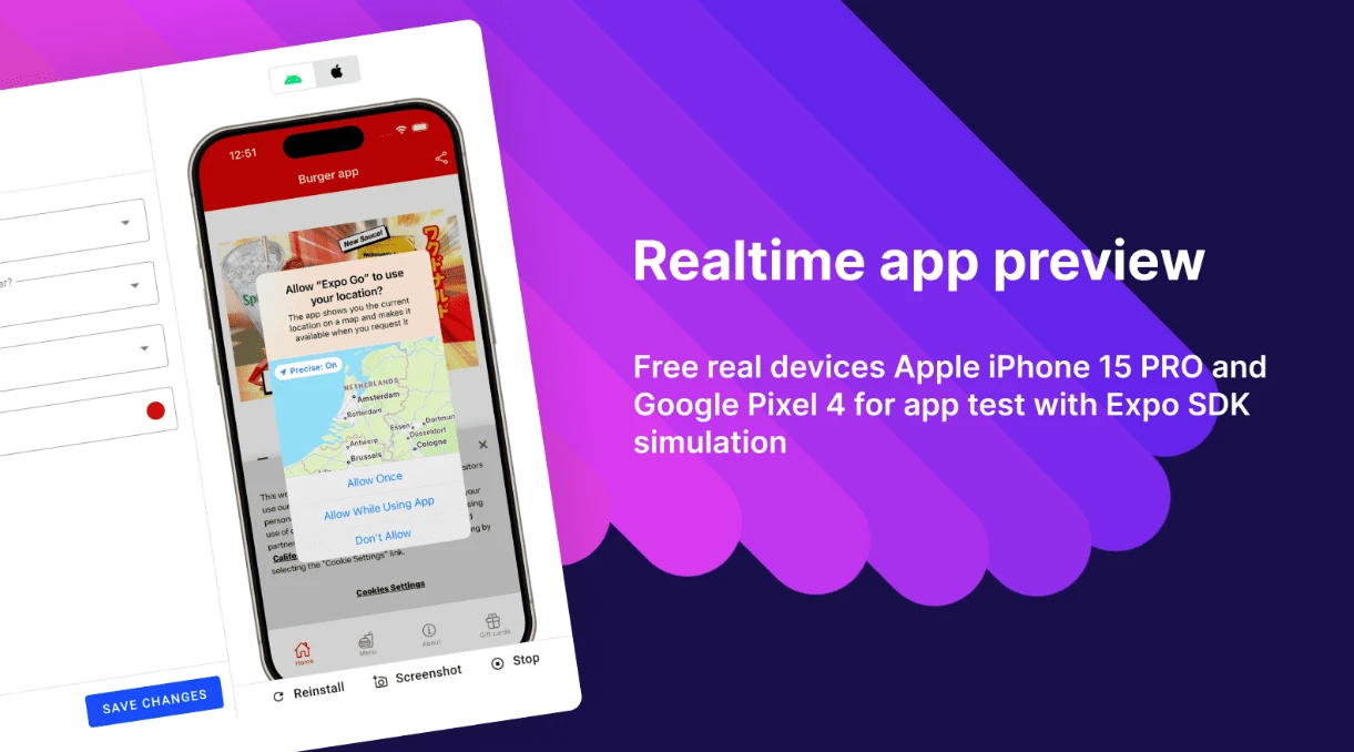 – Expo snack SDK – ferramenta para visualização de aplicativos em tempo real.