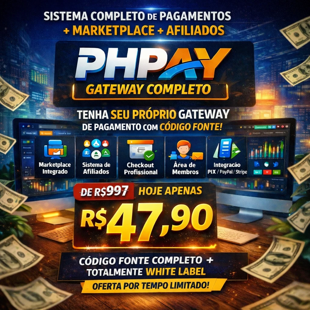 Tenha seu próprio gateway de pagamento com checkout profissional, marketplace e sistema de afiliados, tudo em código fonte.