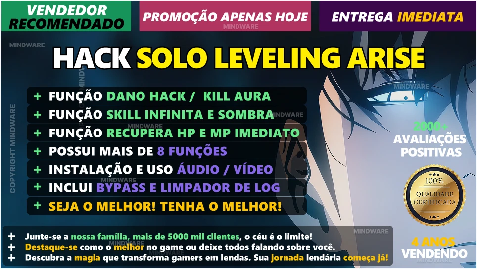 Script Solo Leveling é um software que, vai injetar dentro do seu jogo uma DLL, onde no processo inicial o sistema desativa completamente o sistema de segurança e evita que você seja detectado no processo de inicialização e durante a jogatina, por conta disso o bypass e concluído 100% sucesso, e você pode utilizar com tranquilidade todas as funcionalidades do cheat.