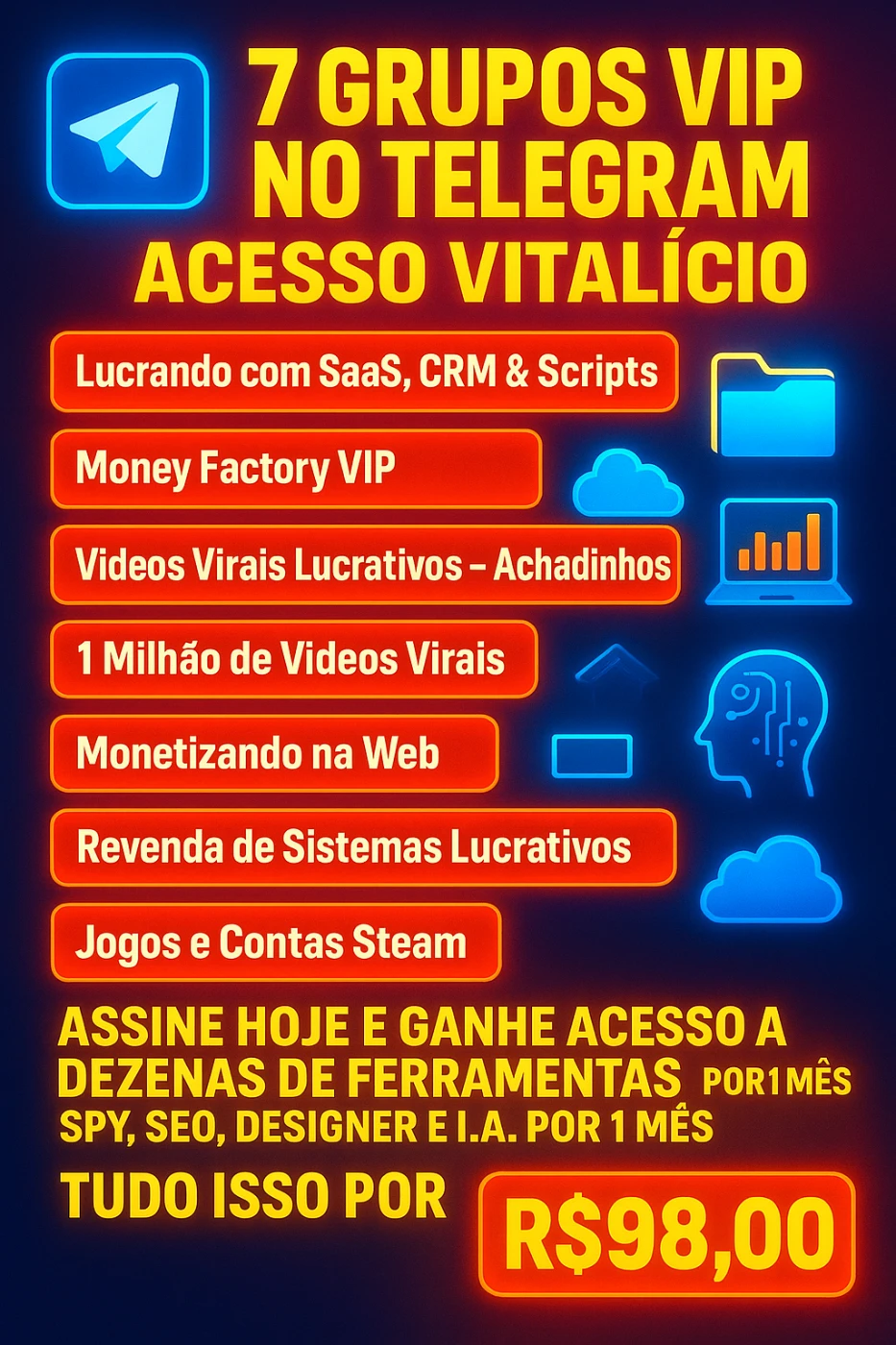 7 GRUPOS VIP NO TELEGRAM (ACESSO IMEDIATO)