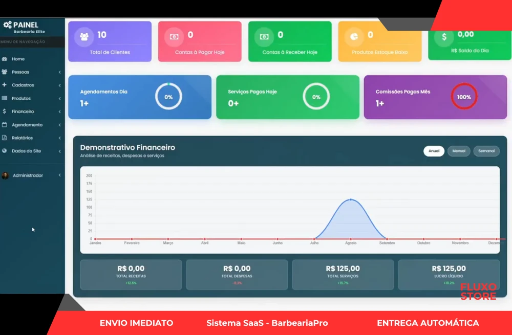 Fluxo de caixa diário e relatórios de desempenho por barbeiro.