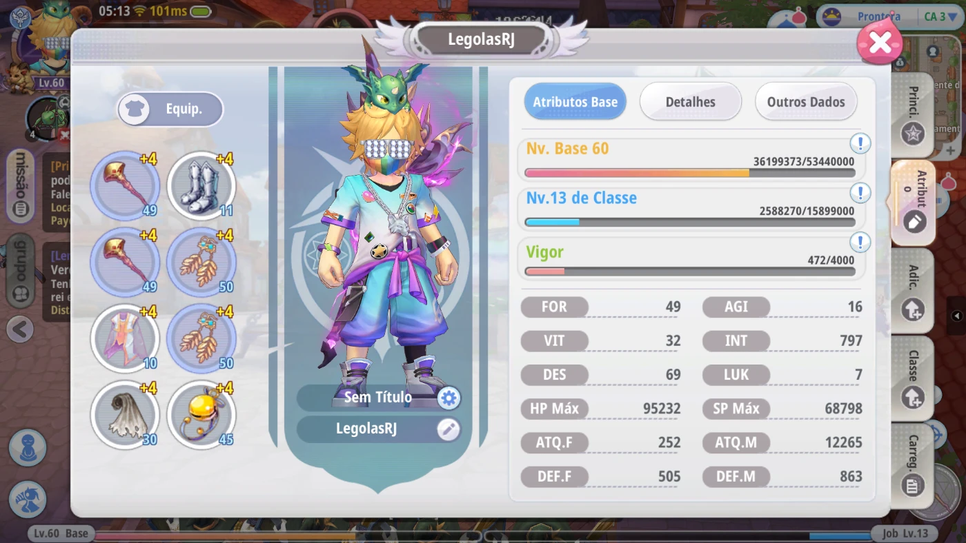 Personagem Ragnarok X: Next Generation Bruxo LV 51