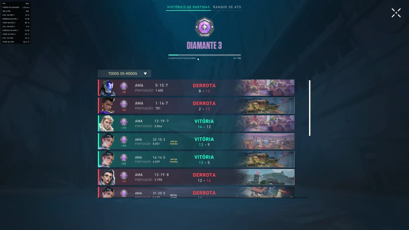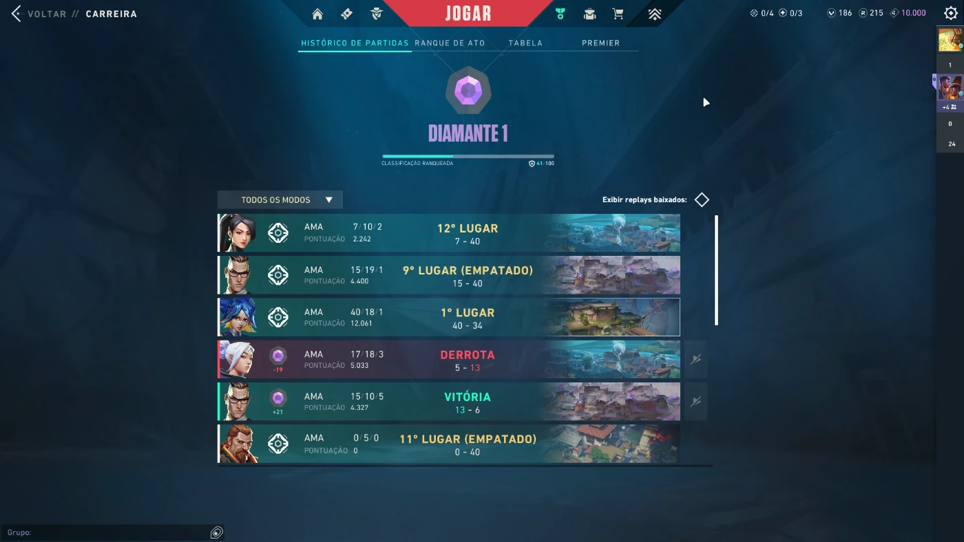 Estou vendendo minha conta do Valorant com várias skins exclusivas e alto histórico de rank. Atualmente no Diamante, já chegou ao Ascendente 2.