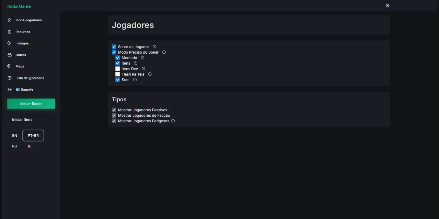 - Detecção de players por proximidade (aviso sonoro e alerta visual no radar)