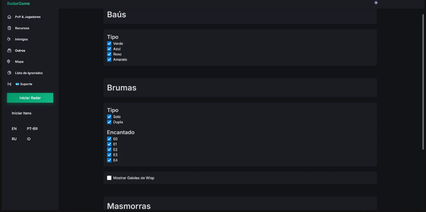 Detecta dungeons e brumas?