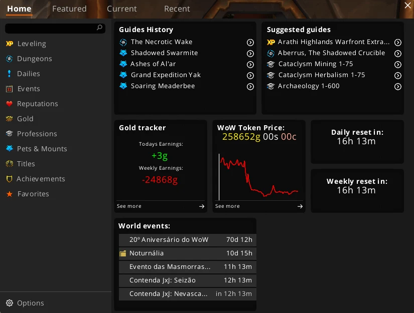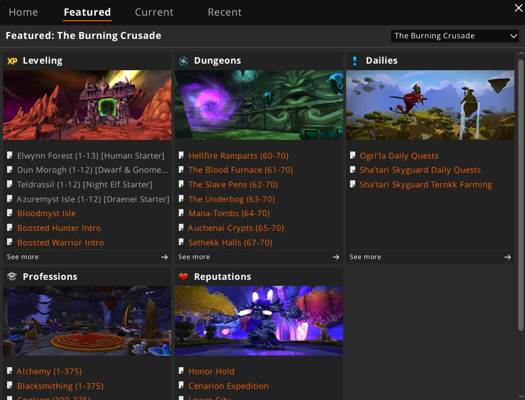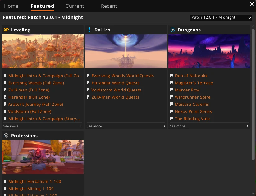 Receba atualizações periódicas automaticamente e tenha sempre a versão mais atual do Zygor, incluindo Retail (MIDNIGHT), Classic, Classic TBC/MoP e Classic TBC Anniversary.