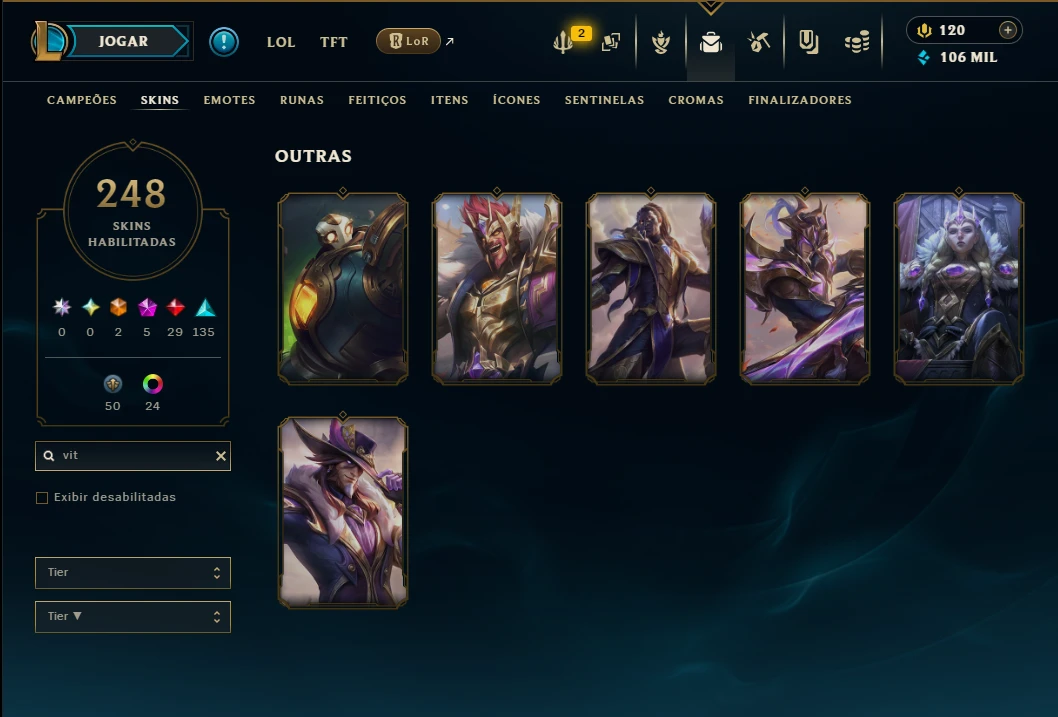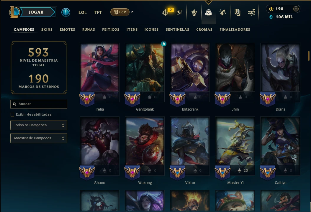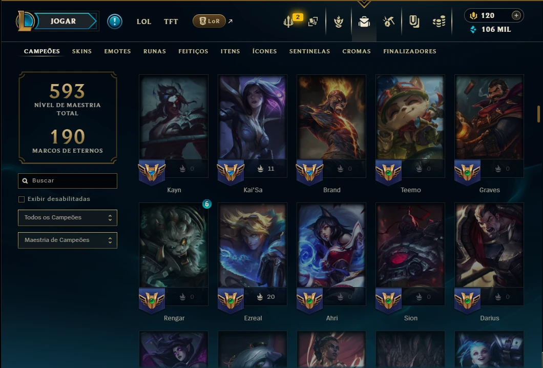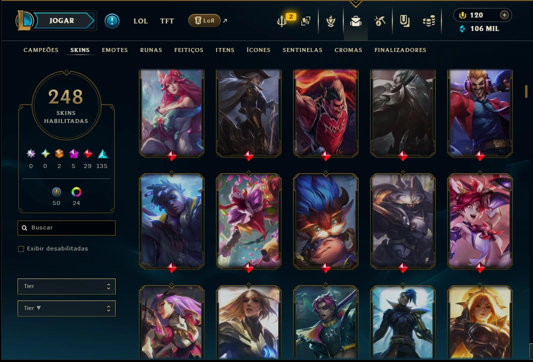 Mais de 5.000 vendas no site – Experiência e Confiança!Ouro 1 com TODOS os Champs e 247 Skins +3 Prestigios