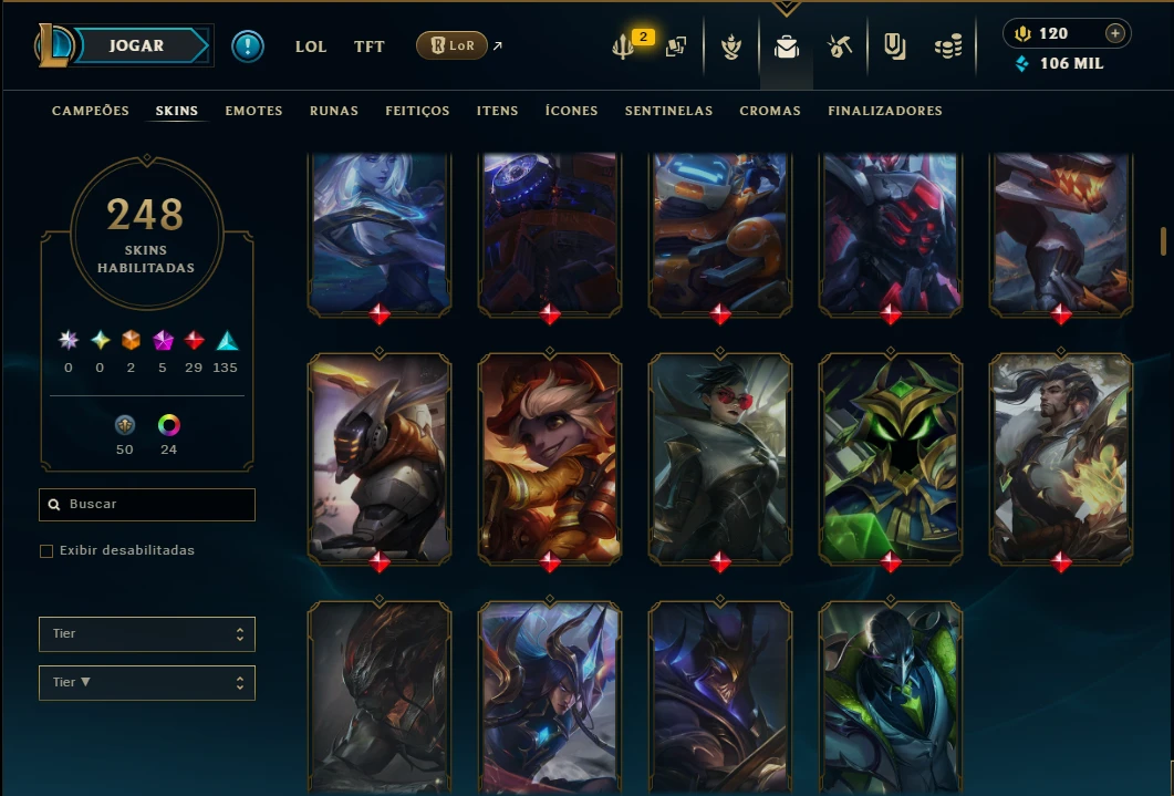 Ouro 1 com TODOS os Champs e 247 Skins +3 Prestigios - League of Legends LOL