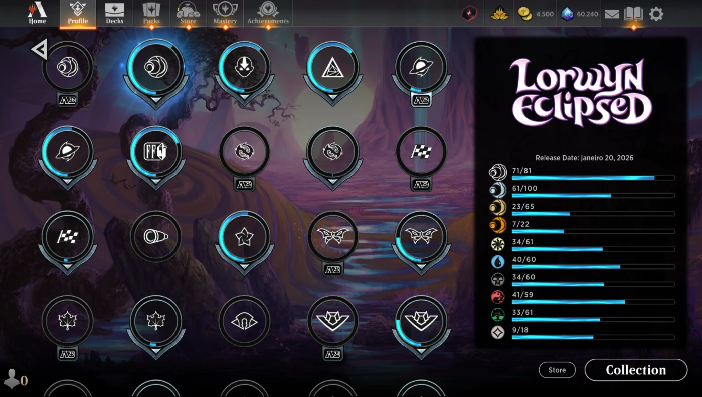 Conta MTG Arena 60200 gems, 4500 gold e 527 booster packs