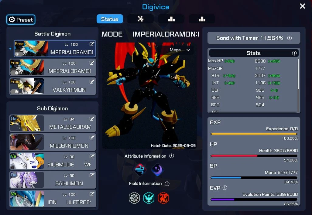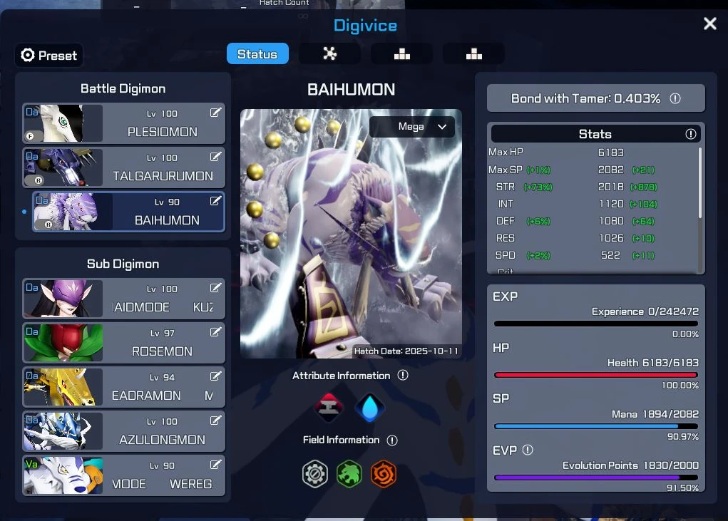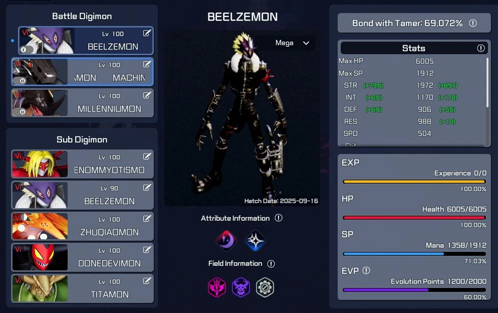 1 BEELZEMON LVL 100 COM 14%BABY STR E 79% TOTAL 69% BOND