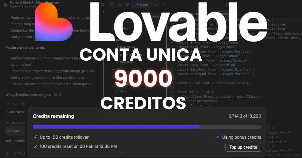 Conta Lovable com 9000 Créditos - Conta Unica - Assinaturas e Premium