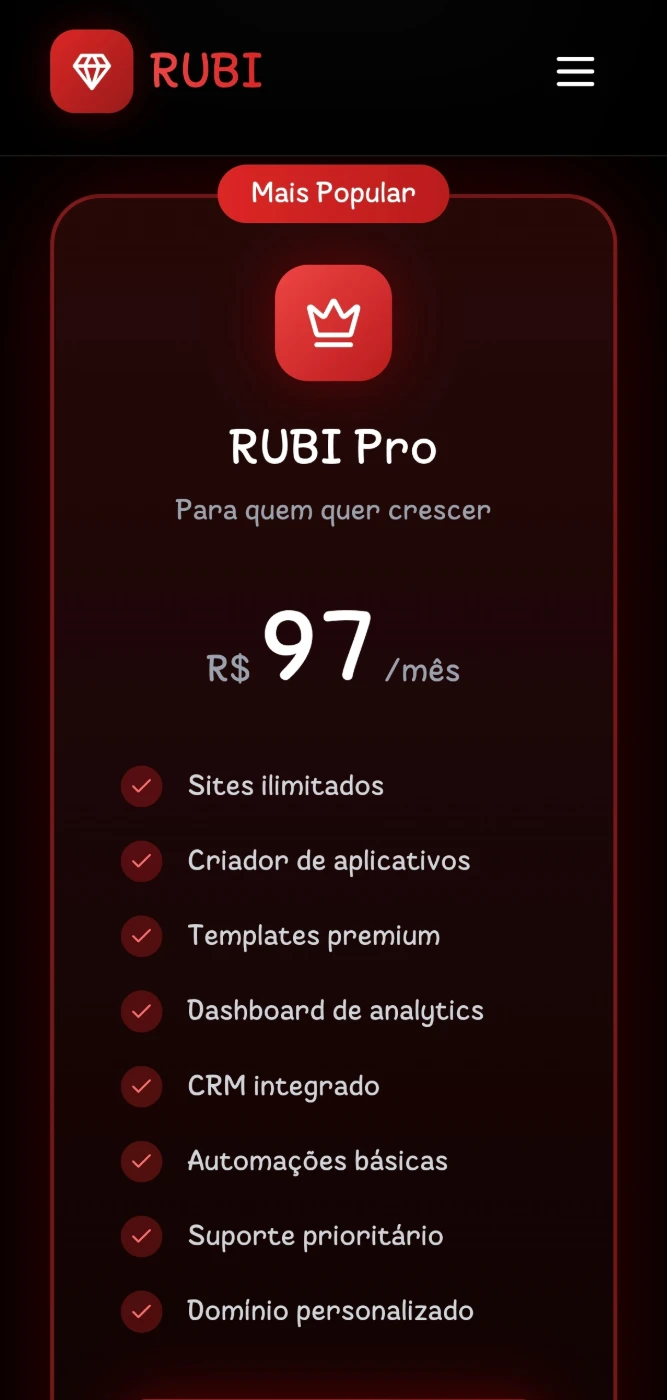 Se você trabalha com serviços, criação de sites, aplicativos, marketing ou atendimento de clientes, a RUBI pode te ajudar a ter mais controle e mais resultados no dia a dia.