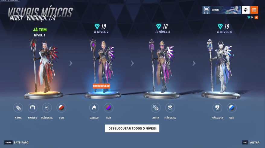 Vendo conta de Overwatch ACEITO NEGOCIAÇÕES com muitas skins, passes completos e míticas. Detalhes da Conta: Nível: 90 Total de Skins: 80+ Skins Míticas: mercy , juno 1 Extras: Arma mítica mercy completa