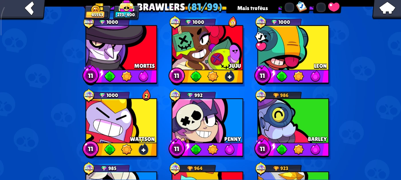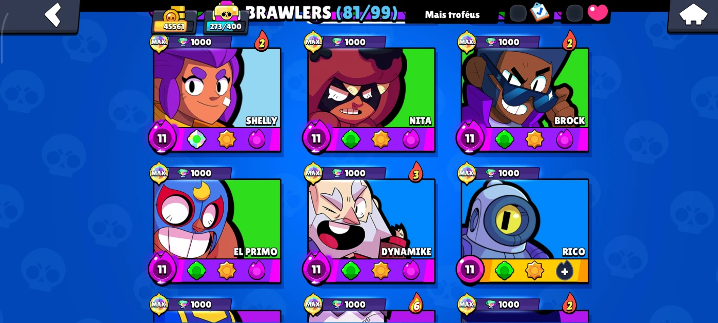 conta brawl stars +45k troféus com muitas skins e brawlers