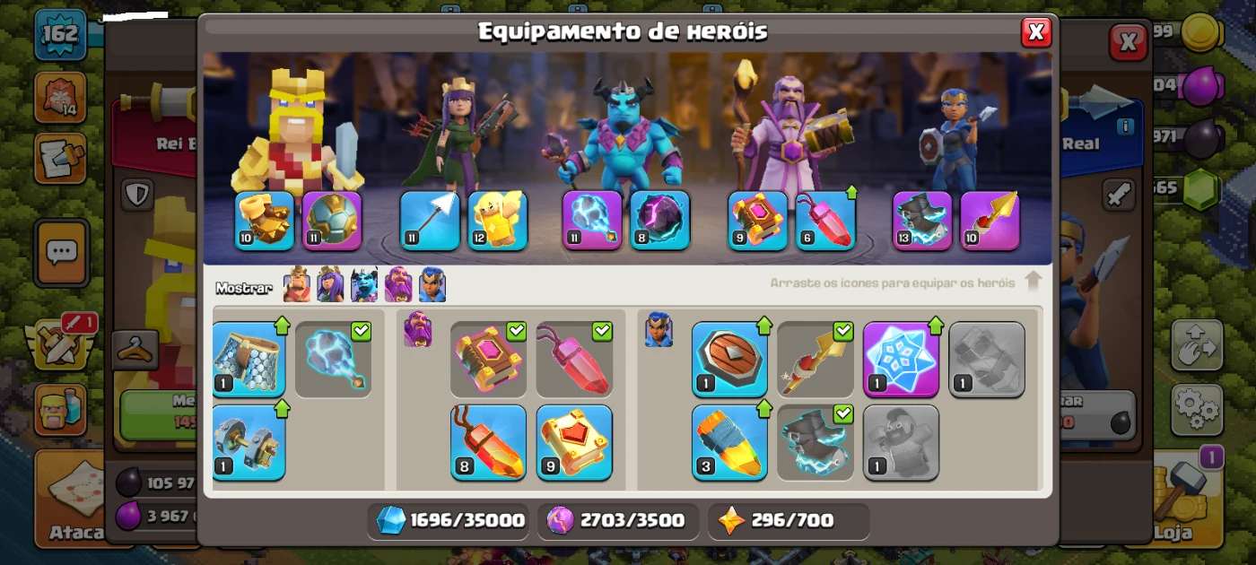 Cv13 Full + 3752 Gemas + 5 Equipamentos Épicos - Clash of Clans