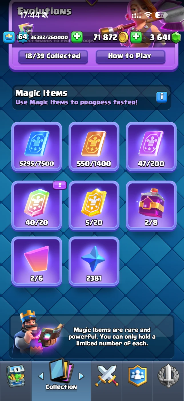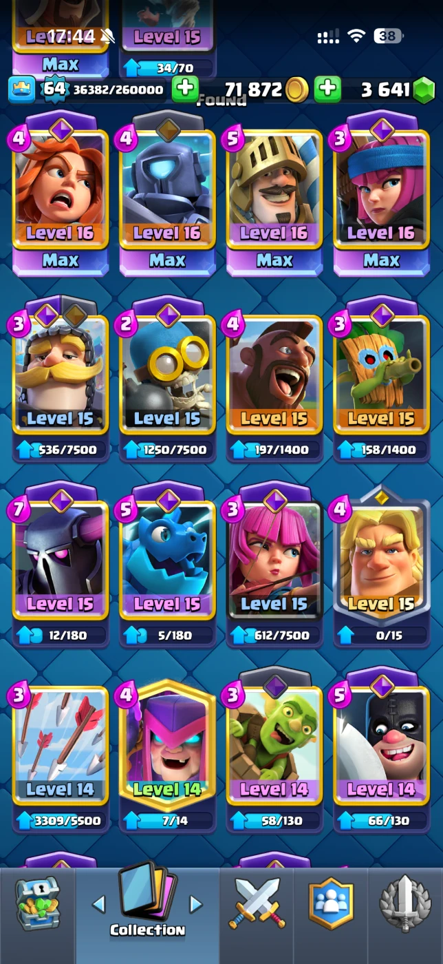 Nível 64 /10.803 Troféus /18 Cartas Evo /5 Cartas Nível 15