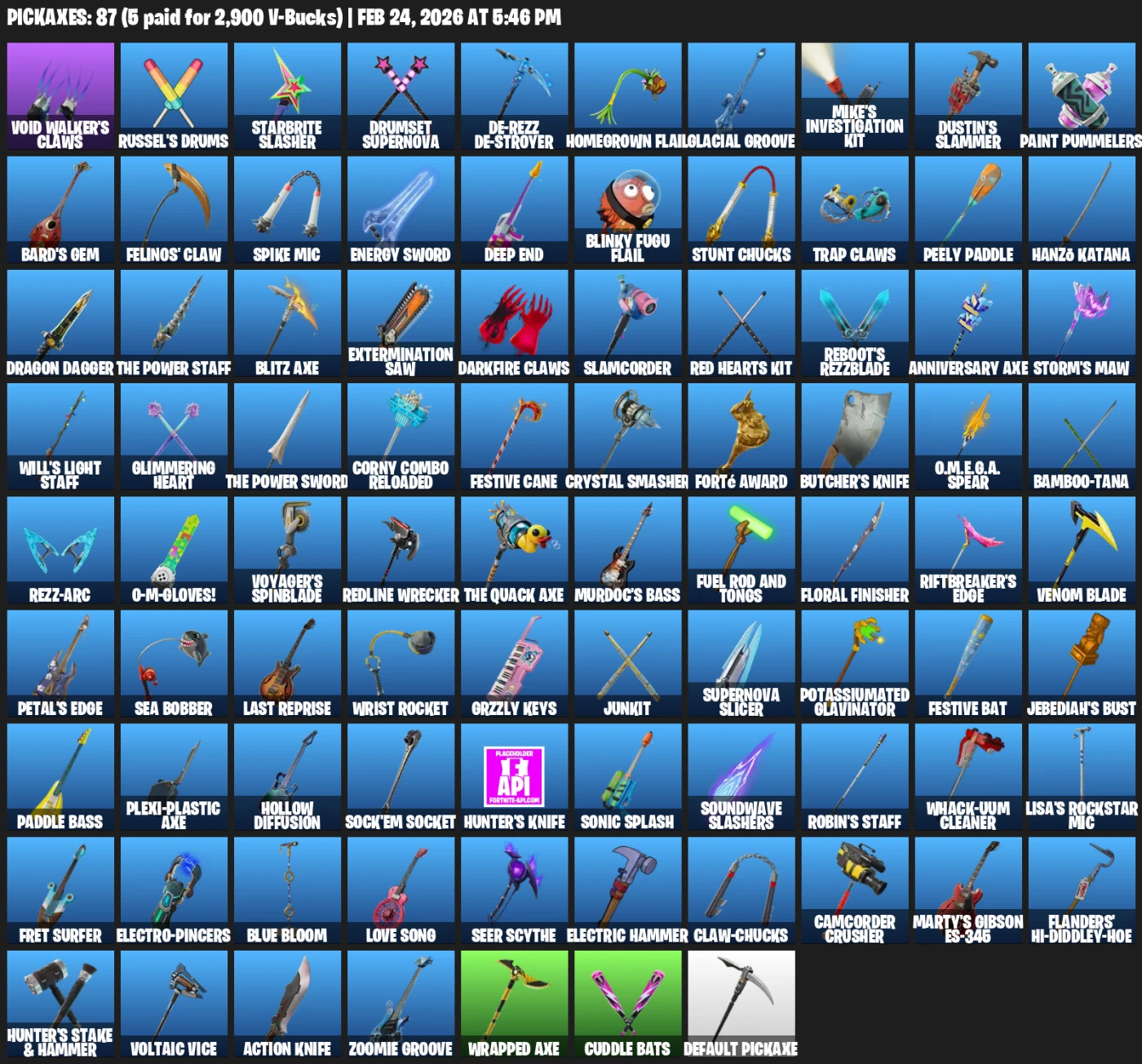 Renegade Raider + 66 Skins + 62 Emotes + 87 Pikaches