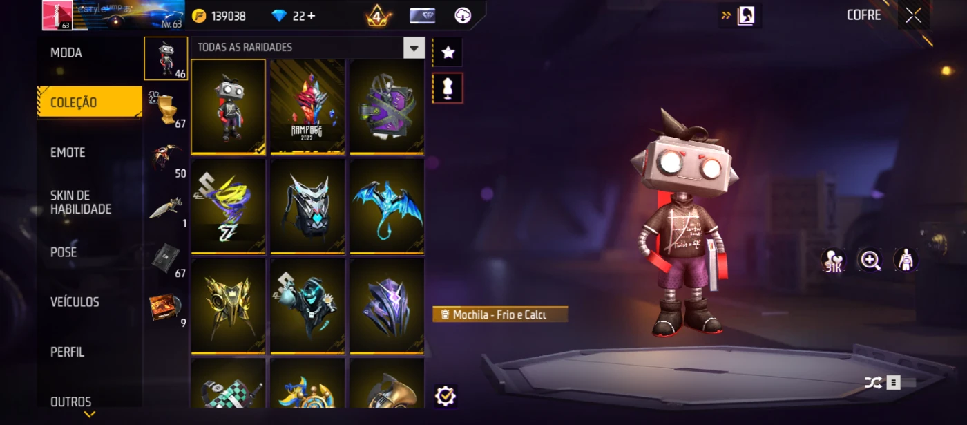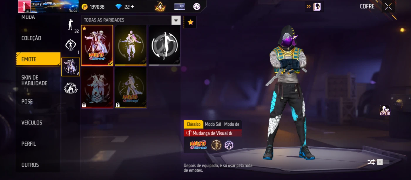 conta de free fire rara , com pack naruto e etc