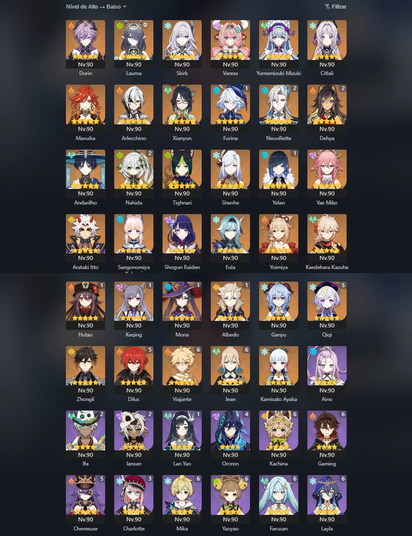 Conta AR 60 COM COLUMBINA Nahida c2 Neuvilette C2 Yelan C1 - Genshin Impact