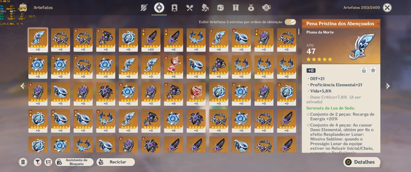 -Se desejar envio dos dados de orações da conta, paimon.moe.