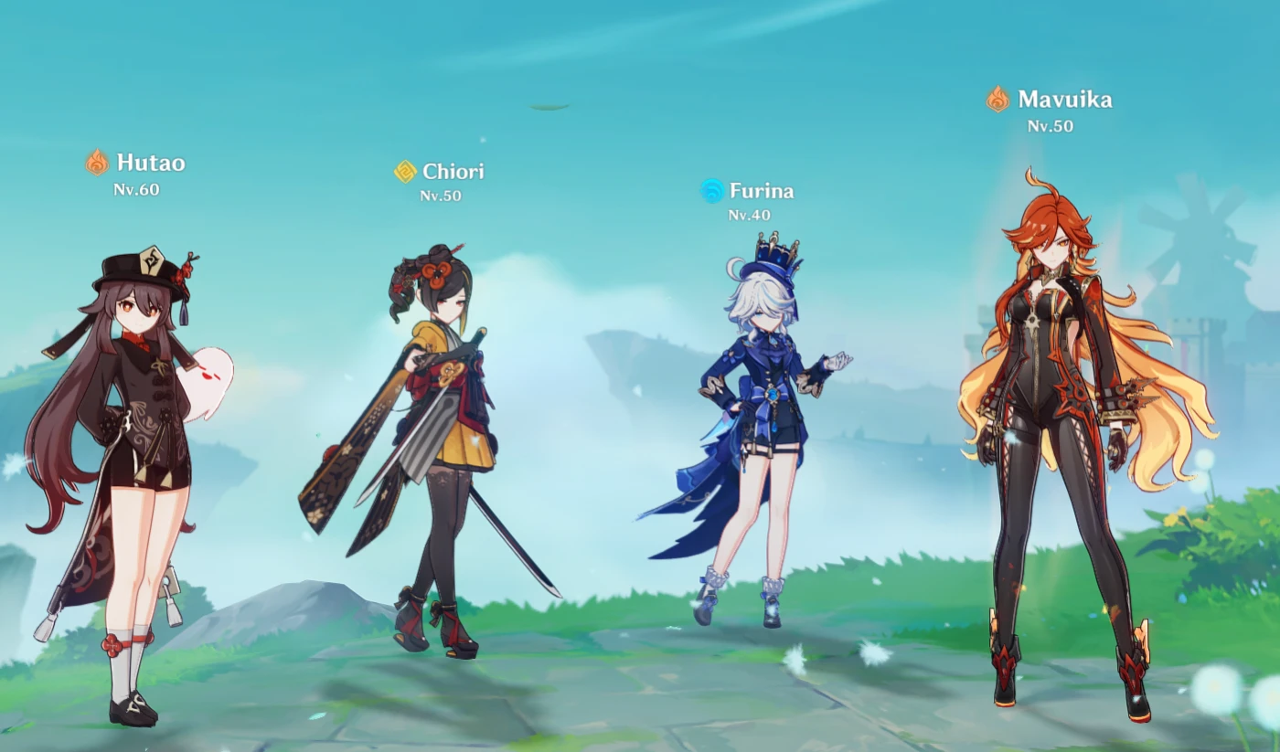 genshin hutao arma assinatura , Mavuika, furina, Chiori
