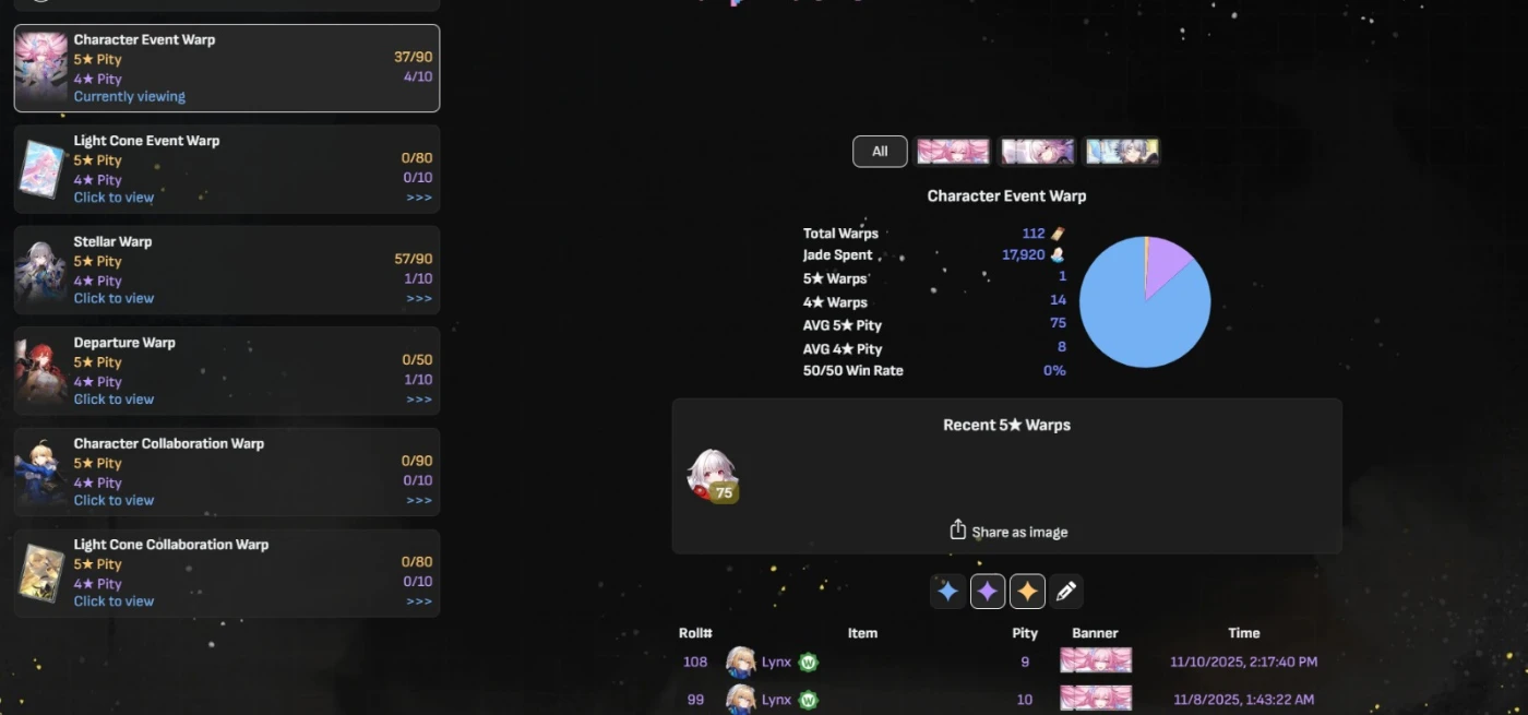 Conta AR 40 Honkai Star Rail com pity garantindo - Honkai: Star Rail