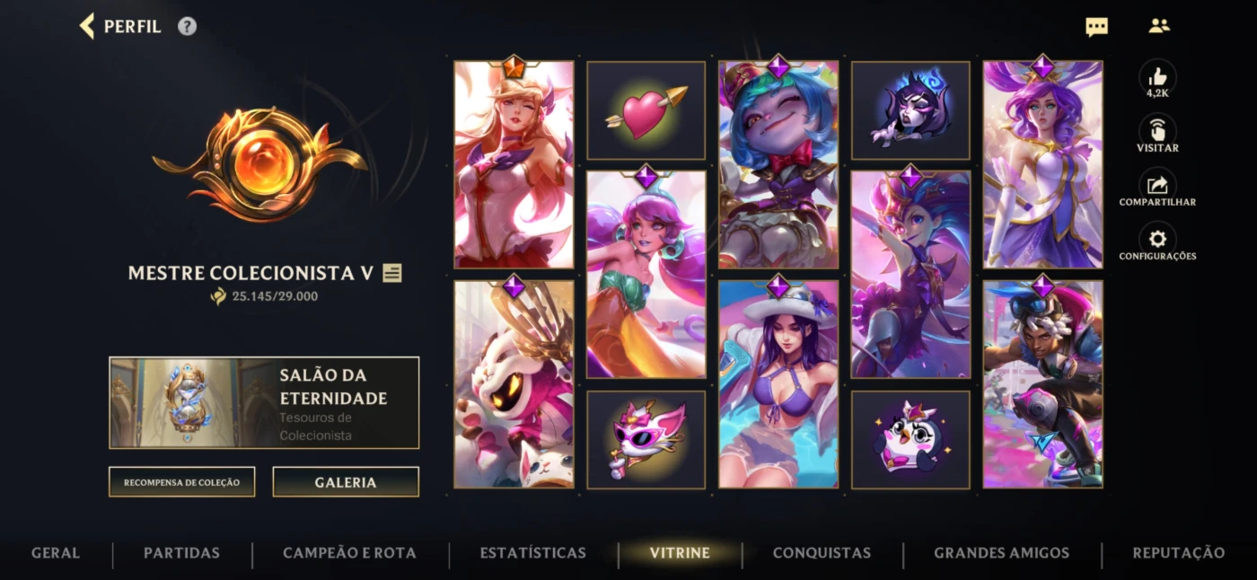 É com muito prazer que anuncio essa conta para possíveis compradores que puderem me ajudar por uma boa causa, me esforcei bastante com pra chegar até esse status com ela, mas de 5 anos jogando, desde o lançamento, e agora de forma justa e honesta estou prestes a compartilhar essas conquistas com outra pessoa, será você o próximo dono dessa conta incrível?