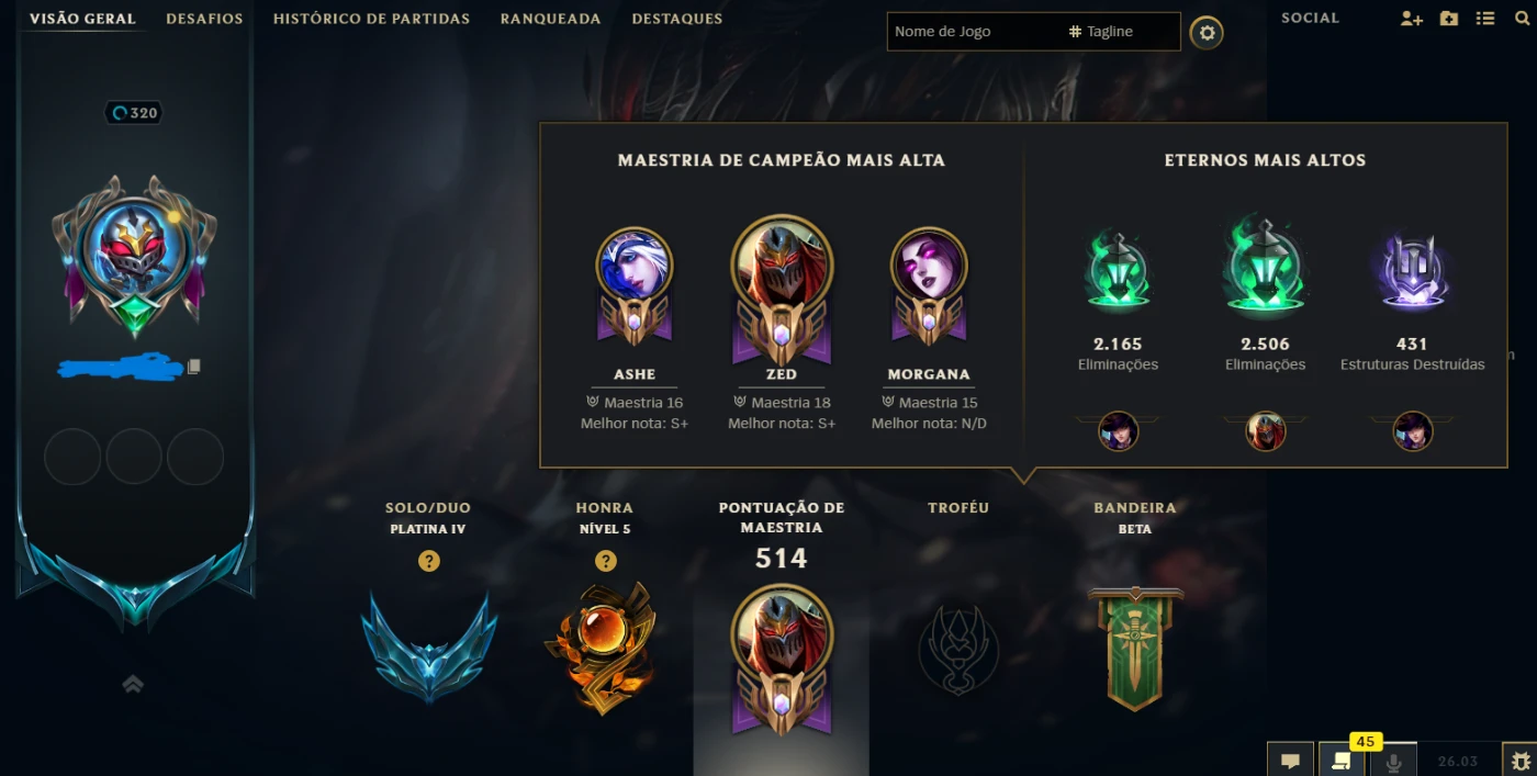Aatrox Prestigio 2022, Ahri 2022, Thresh 2022 Conta Platina - League of Legends LOL