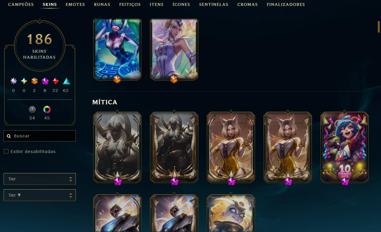 ◼Skins principais da conta sao:Aatrox prestigio Edição 2022,Ahri kda prestigio 2022 e ◼Thresh pulsefire prestigio 2022.
