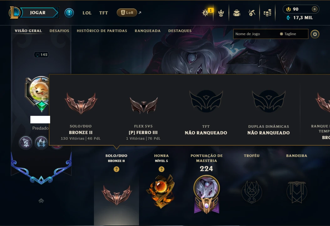 Bronze 2 com 140 Champs e 23 Skins ( 250 Jogos )