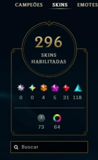 Possui 296 skins no total, sendo: