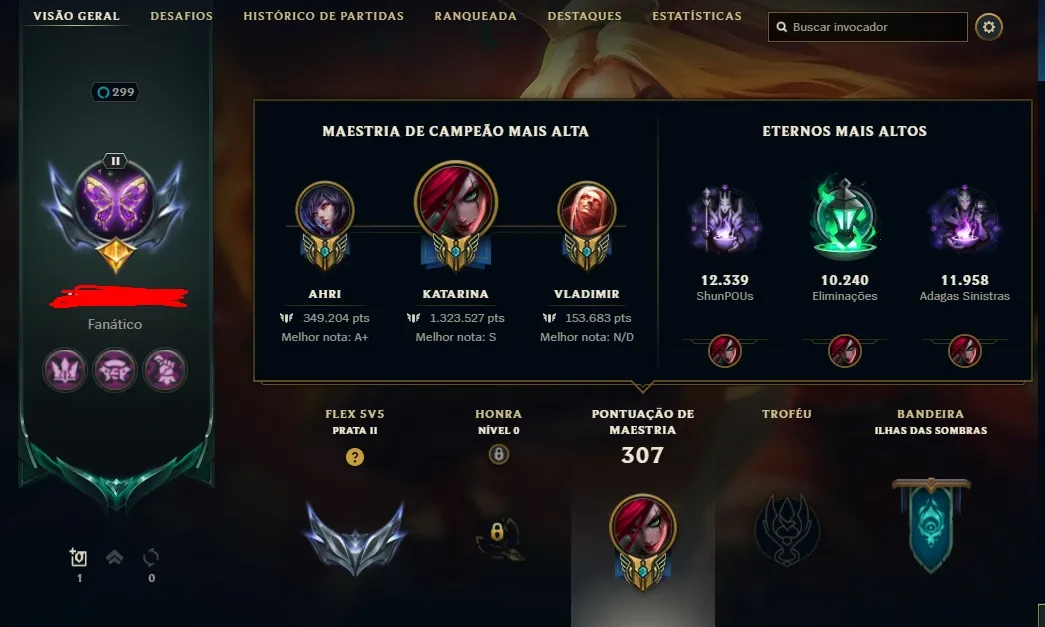 CONTA DE LOL COM 1 MILHÃO DE KATARINA, COM TODAS AS SKINS MENOS A PRESTIGIO NOVA, PRATA, LEVEL 299, COM O PASSE ATUAL, A CONTA CONTÉM: