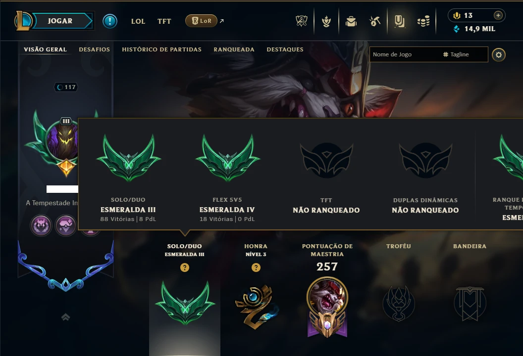 Esmeralda 3 com 80 Champs e 52 Skins ( JG / TOP / MID ) - League of Legends LOL