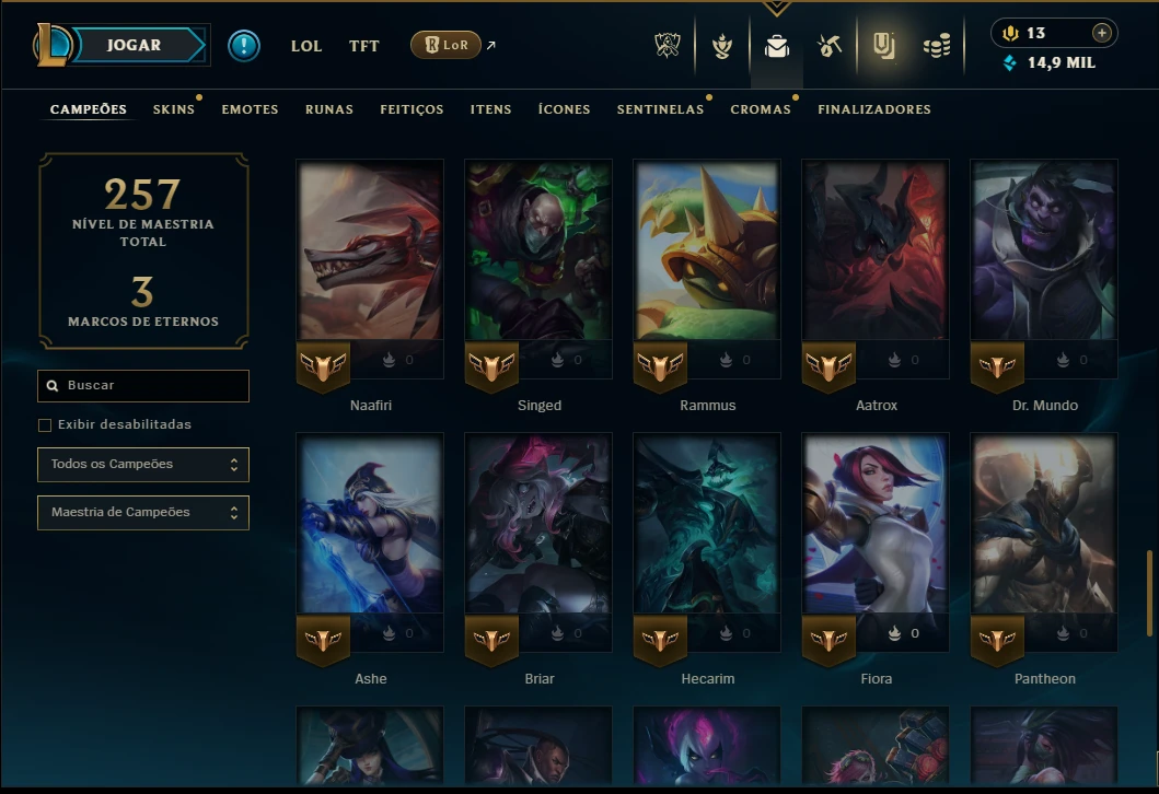 Mais de 5.000 vendas no site – Experiência e Confiança!Esmeralda 3 com 80 Champs e 52 Skins ( JG / TOP / MID )